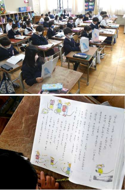 1年生の国語では、「おとうとねずみ チロ」を学習しています。3匹のねずみの兄弟が、おばあちゃんからの手紙で、新しい毛糸でチョッキを編んでいると来ました。