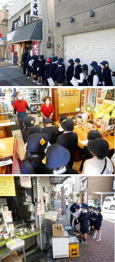 おそば屋、美容室、お茶屋、郵便局、自転車屋、フランス料理店、お豆腐屋、銭湯、ペットショップで、お忙しいところ、子どもたちのためにやさしく丁寧に答えていただきました。ありがとうございます。子どもたちは緊張しながらも、よくがんばっていました。