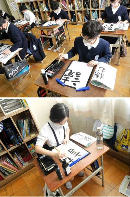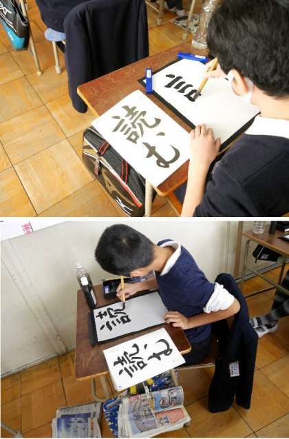 5年生の書写は「読む」を書きました。画数が多くなってくると、バランスをとって書くのがむずかしいですね。