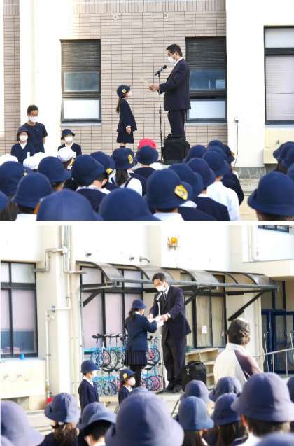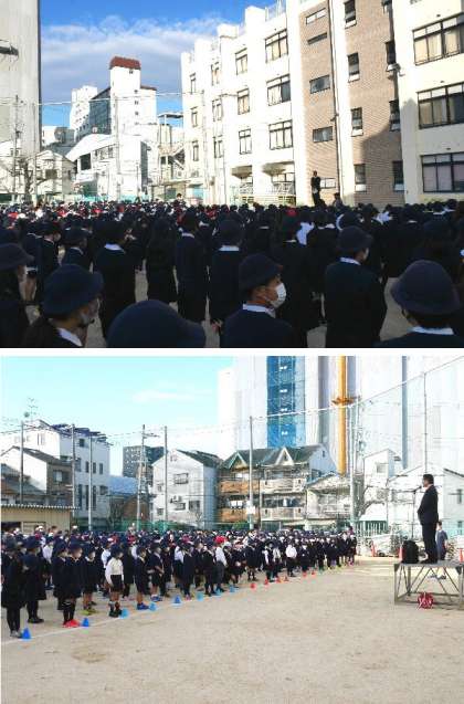 12月20日 全校朝会!全校児童が整列