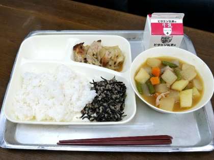 今日の献立は、鶏肉のゆず塩焼き、ふくめに、さかなひじきそぼろ、ごはん、牛乳でした。
