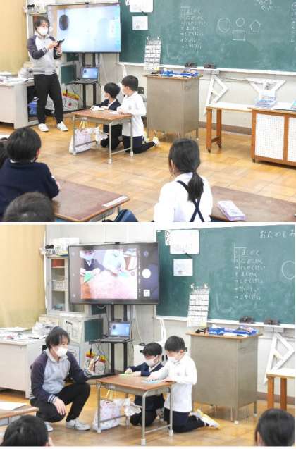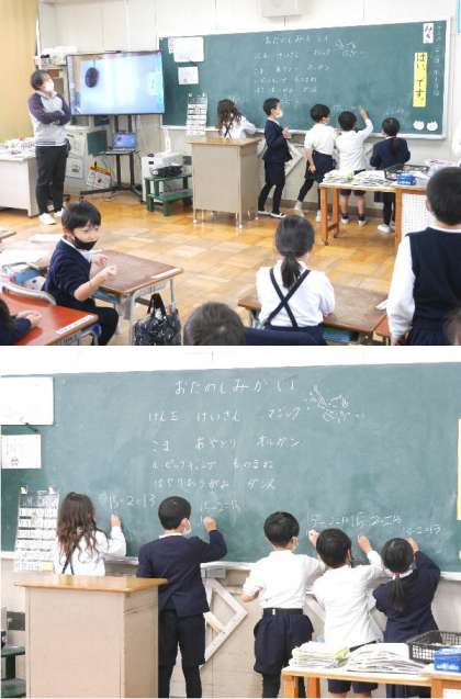 1年生で学期末のお楽しみ会をしていました。自分の得意なことをみんなの前で披露していました。計算や折り紙など多才です。