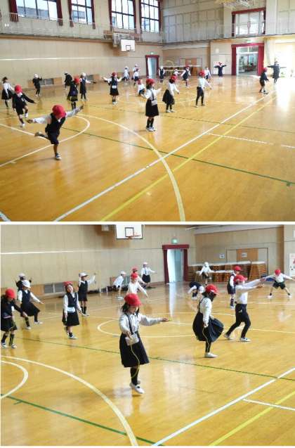 1年生が、体育館でなわとびの後ろとびの練習をしていました。なかなかとぶタイミングがむずかしそうです。2年になると二重とびもあるよとのことです。できるようになるかな。練習しましょう。