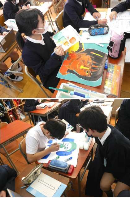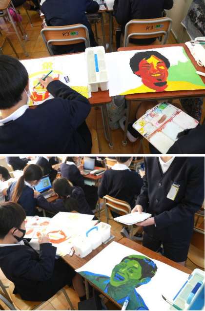 6年の図工で取り組んできた著名人の顔デザインが完成してきましたね。