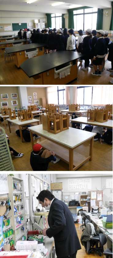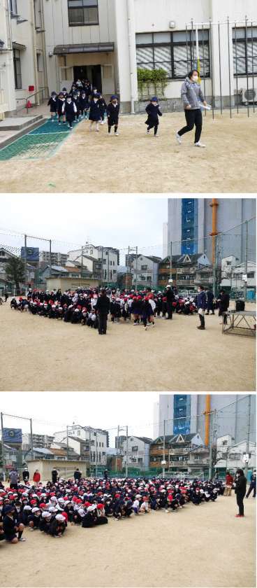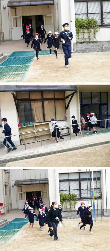 地震想定の訓練のあと、いったん運動場に全児童が集合して人員確認です。そのご、津波警報がでたので、先生で階段等の安全確認後に、3階以上に避難します。放送で校長先生からの講評です。運動場への避難に5分9秒、3階への避難に4分32秒かかりました。自分の身は自分で守るのが基本です。しっかりと確認して行動できるようにしてください。東北には「津波てんでこ」という言葉があるくらいです。各ご家庭でも災害時の行動について話をしてみてはいかがでしょうか。