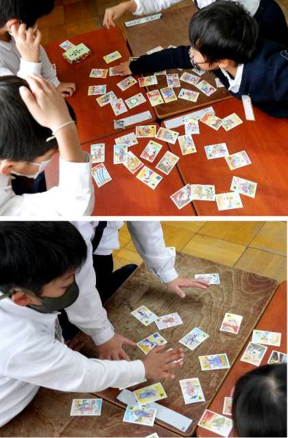 1年生がかるたとりの練習をしていました。みんな真剣です。