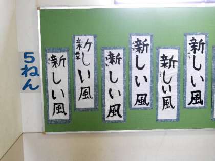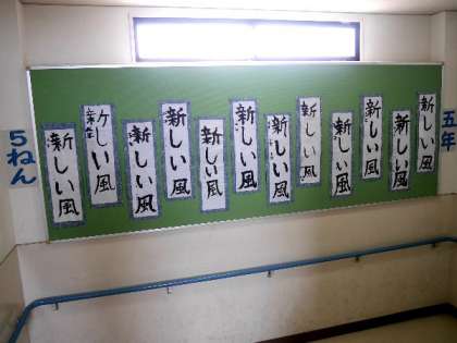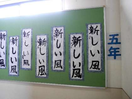 5年生の掲示板には、書き初め「新しい風」が掲示されました。いよいよ今年は6年生になりますね。よろしくお願いいたします。