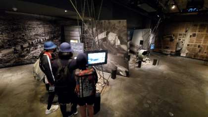 防空壕の体験もしました。東都島小学校は大阪空襲に3回目昭和20年6月7日に焼失しました。