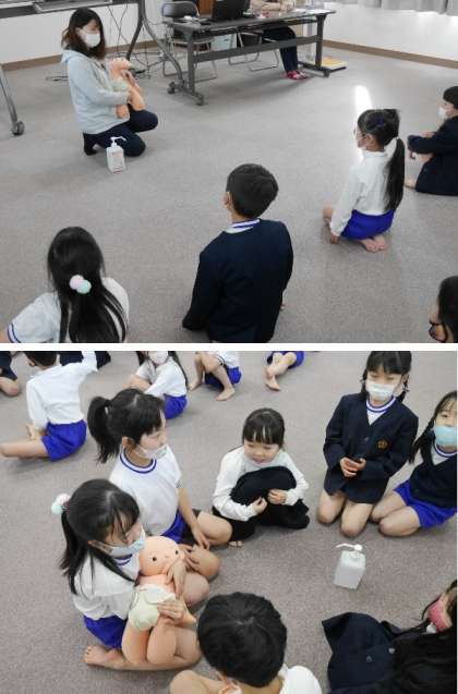 各学年の3学期の発育測定が始まりました。1年生では、おなかの中の小さかった赤ちゃんから、大事に大事にたくさんの人に守られて育ってきました。みんな大切ないのちだようとお話しがありました。同じ重さの赤ちゃんの人形も体験しました。