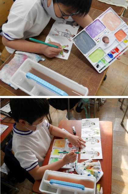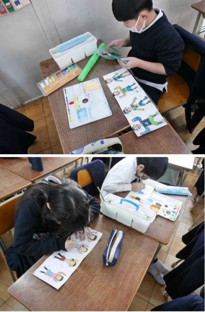 4年生が「世界の花」をていねいに描いてきました。最後の仕上げです。