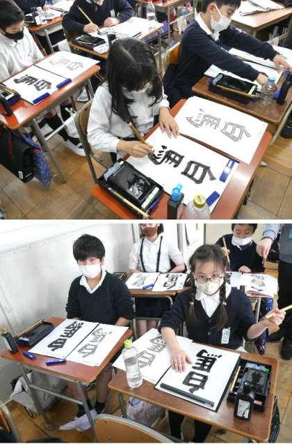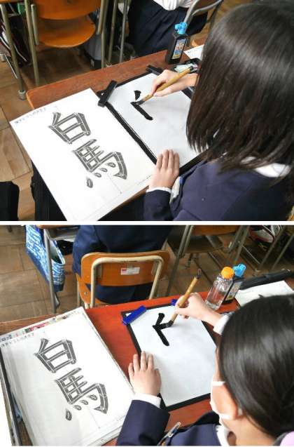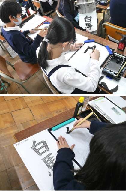 4年生が書写で「白馬」を書いていました。画数が多くて書くのがむずかしくなってきましたね。