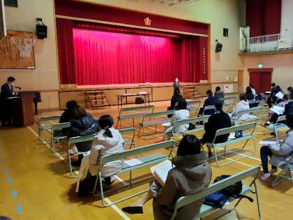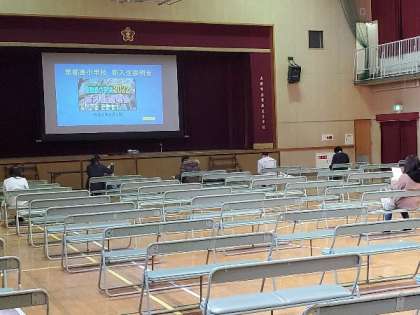 4月に入学してくる新1年生の保護者説明会を行いました。今年の1年生のおもな行事をビデオでみていただきました。