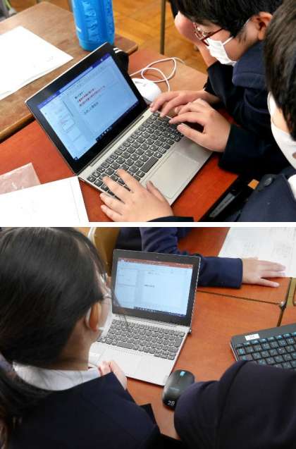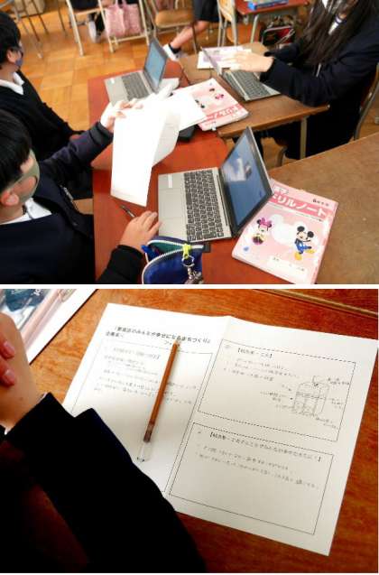 6年生では、キャリア教育として、都島区のみんなが幸せになるまちづくりのための企画を考えて、プレゼンにまとめています。