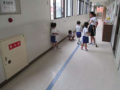 お昼休みの後のそうじは、6年生が掃除の仕方を教えてくれています。