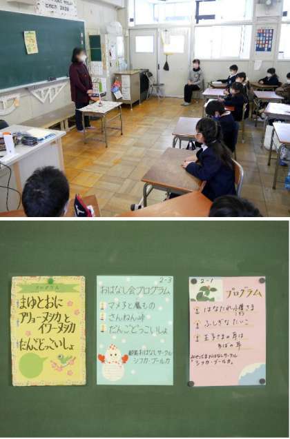 都島区のおはなしサークル「シフカ・プールカ」さんに来ていただき、お話しをしてしていただきました。本来ならば、お話しの世界に入り込むために、ローソクをつけて暗くして、いろいろなお話しをしていただくのですが、コロナ禍のため、ローソクはつけないでしていただきました。