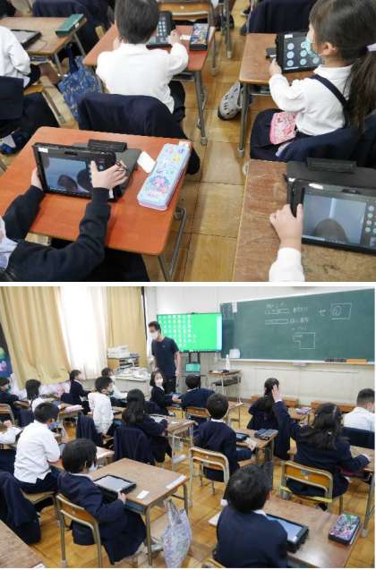1年生ではタブレットの起動とオンラインソフトのチームズでの接続練習をしました。大阪市の学校では、すべての学校で順次、ネット回線が新しいくなり、タブレットのソフトも入れかわりました。アカウントとパスワードも新しくなりました。新しいアカウントでログインしなおしです。