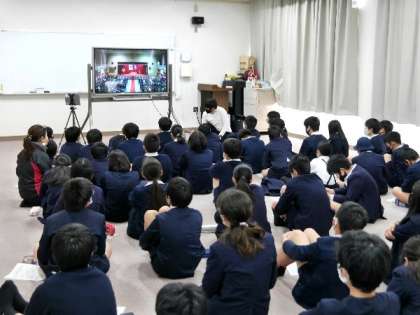 6年生が過去の卒業式のビデオを見ています。いよいよ卒業ですね。
