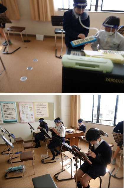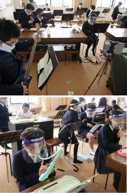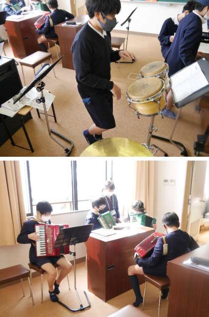 6年生が音楽室で合奏の練習です。熱心に各パートごとに練習をしています。