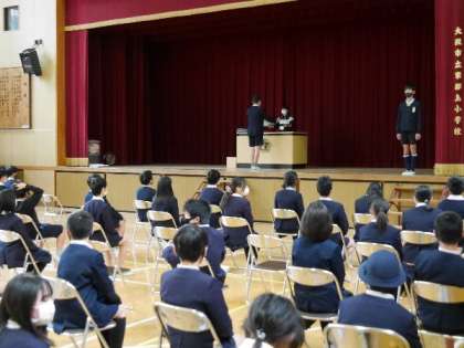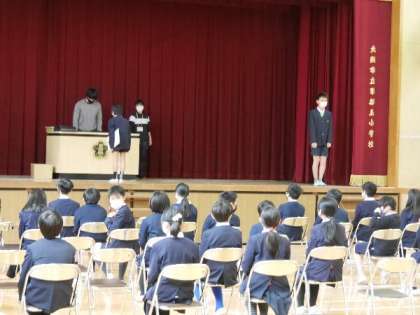 6年生が卒業式の練習で、卒業証書授与の練習をしていました。