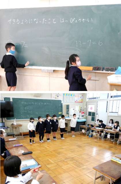 1年生では、「できるようになったこと」を発表していました。けんだま、こままわし、算数の計算・・・、たくさんのことがこの1年でできるようになりましたね。