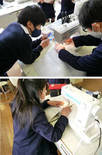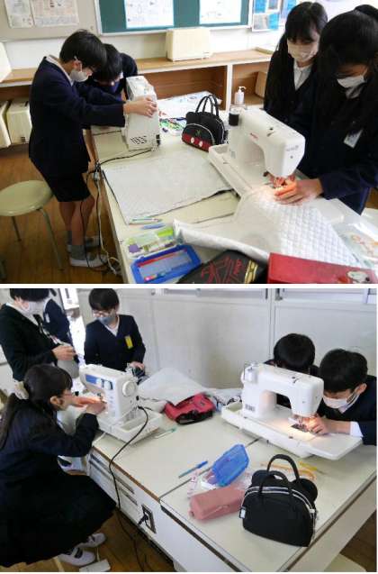 5年生では、トートバッグを家庭科で作っています。しつけ糸でとめた生地を、ミシンで縫っていきます。ミシンの糸かけやボビンの取り付けなどの準備に時間がかかっていました。ミシンの使い方を知っておくとと便利ですから、しっかり体験しておきましょう。