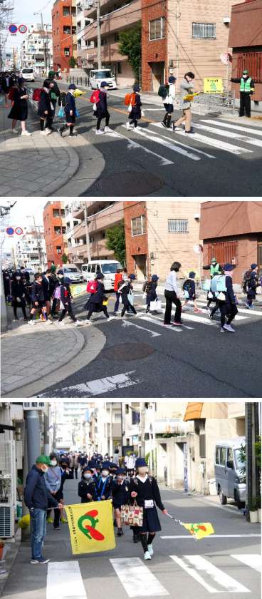 集団登校の班「分団」の新しい班長を決めて、新しい班を編成して、通学路の確認のため集団下校をしました。地域の見守り隊の方々が要所要所に立っていただいて見守っていただいています。いつもありがとうございます。