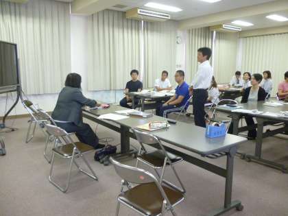 いつも楽しくにぎやかな職員ですが、今日は、校外から指導講師の先生を招いて、緊張感のある話し合いが行われます。