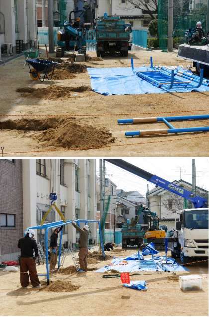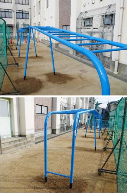 80周年記念事業の一環として、子どもたちに遊具をということで、うんていの工事がありました。全長14メートルもある、とても立派なものを作っていただきました。ありがとうございます。子どもたちの体力向上につながると思います。