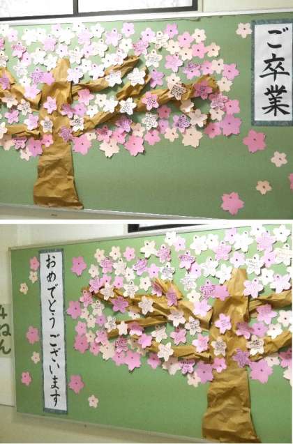 4年生の掲示板に、卒業お祝いの掲示がされました。