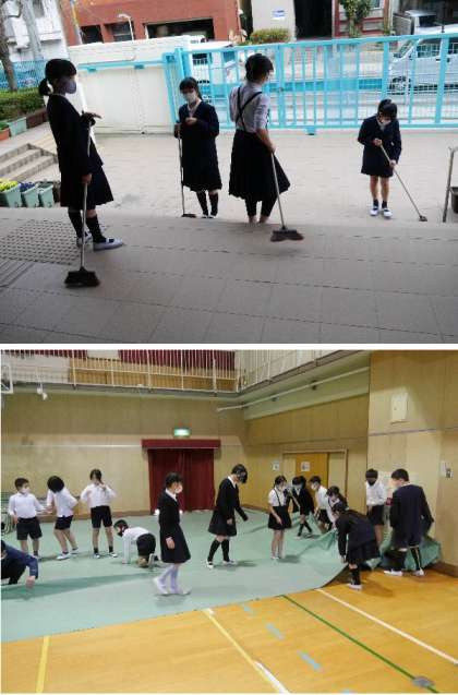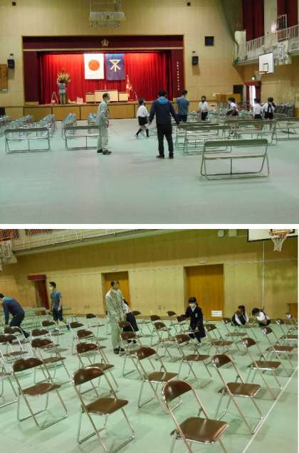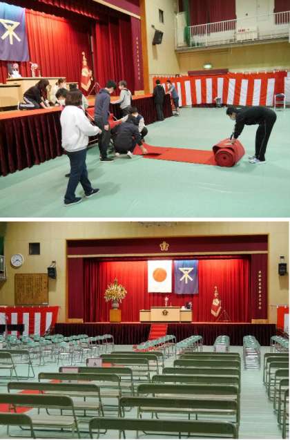 明日の卒業式の会場準備を5年生が手伝ってくれました。5年生も在校生代表で参列します。
