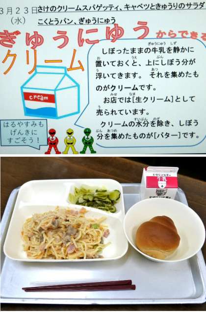 今年度の給食は最後です。4月は9日から給食が始まります。