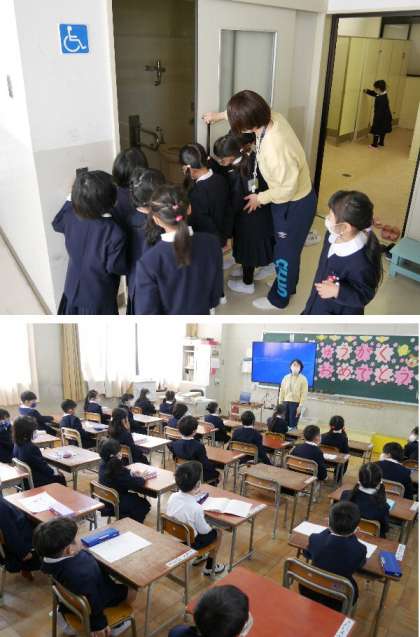 昨日の入学式をおえ、1年生は、今日から登校して学校生活が始まります。トイレの利用の仕方を教えてもらったり、担任の先生から、これからの学校生活についてお話をしてもらっていました。