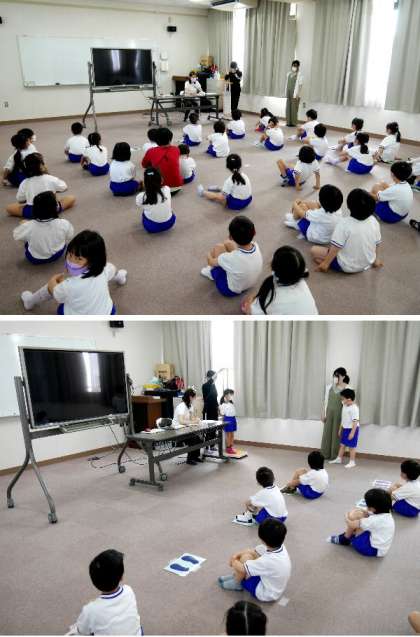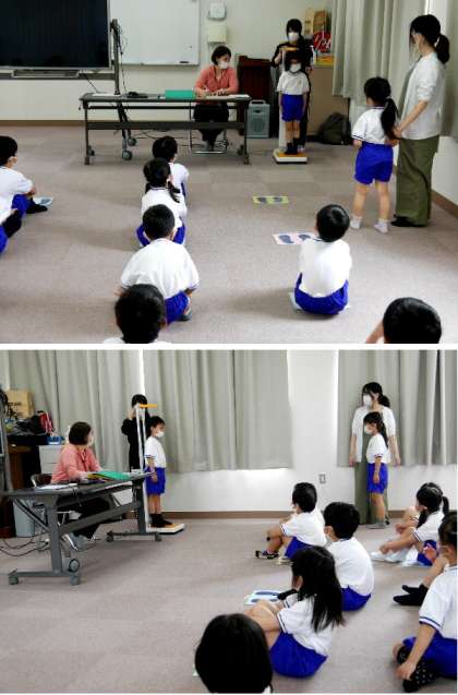 昨日から順に発育測定が始まっています。今日は1年生の発育測定です。身長と体重を一度に測ることができます。測り方の注意をうけて、順に測定します。他の人は静かにまっています。よく頑張っています。