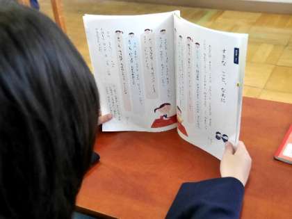 2年生の国語で音読をしていました。単元は「すきなこと、なあに」です。