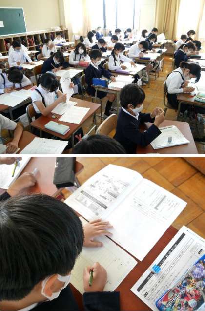 5年生と6年生で、大阪府のすくすくテストを行いました。5年生は、国語、算数、理科、わくわく問題、アンケートです。6年生は、わくわく問題とアンケートを行いました。わくわく問題は教科横断型の問題です。6年生はテスト続きで大変でしたね。