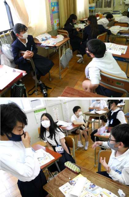 6年生の英語では、自分の名前や、好きなこと、誕生日を友だちとペアで発表しあって練習していました。
