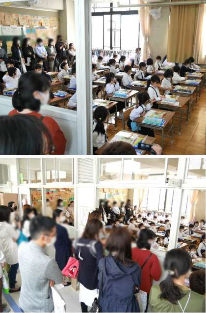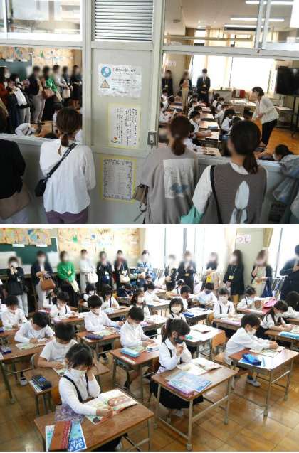 1年生の参観は、2時間目と3時間目に、学級を分けておこないました。たくさんの保護者の方にきていただきました。