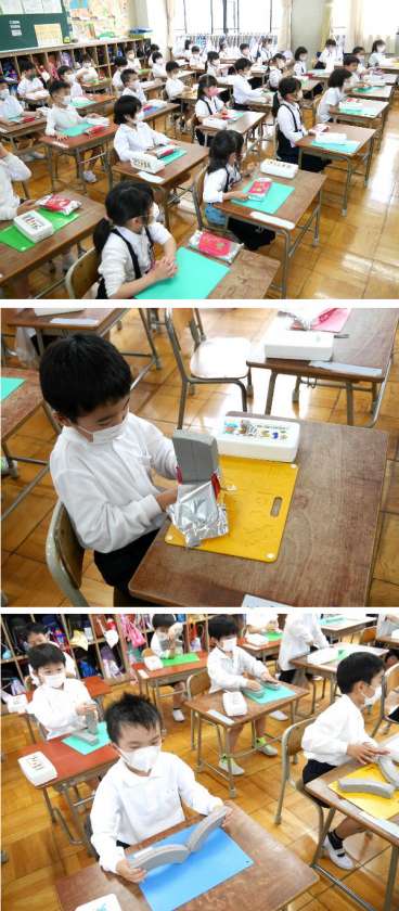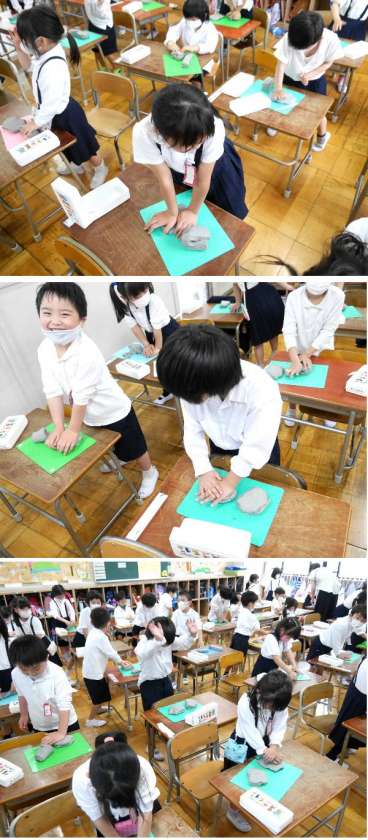 1年生の生活科では、ねんどを取り出して、いろいろなものが作れるように、はじめて袋からとりだして、まるめていました。さあ、どんなものが作れるかな!