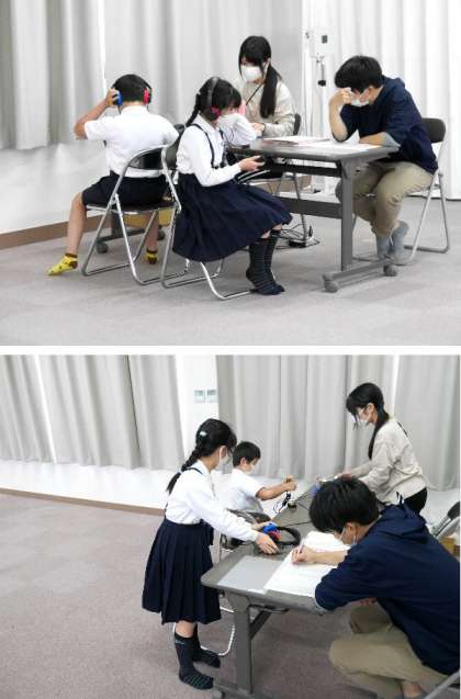 5年生が聴力検査をしていました。順番にすべての学級で検査をおこなっています。