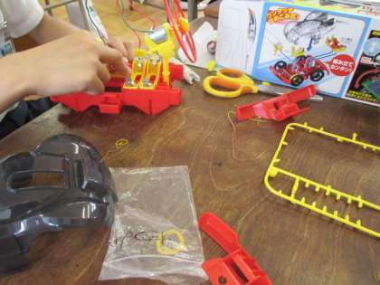 理科は「電気のはたらき」の学習です。回路を組み立てて、モーターを回します。