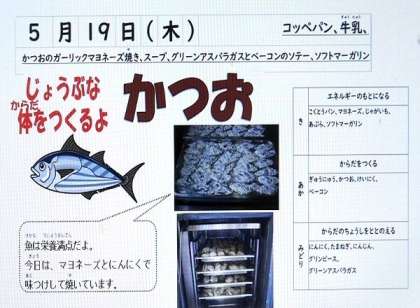 5月19日 今日の給食は! 公開日 2022/05/19 更新日 2022/05/19 学校生活 今日の献立は、かつおのガーリックマヨネーズ焼き、スープ、グリーンアスパラガスとベーコンのソテー、ソフトマーガリン、コッペパン、牛乳でした。 いいね(0)