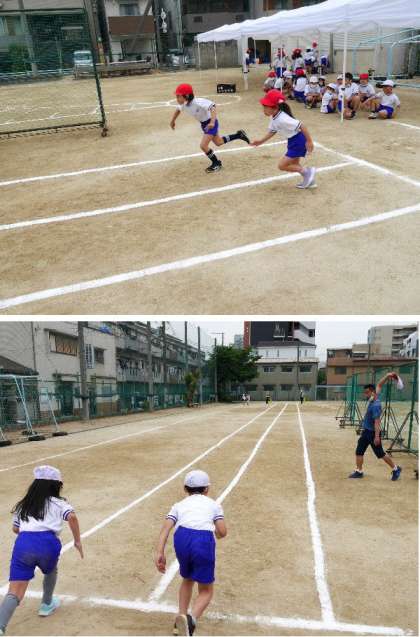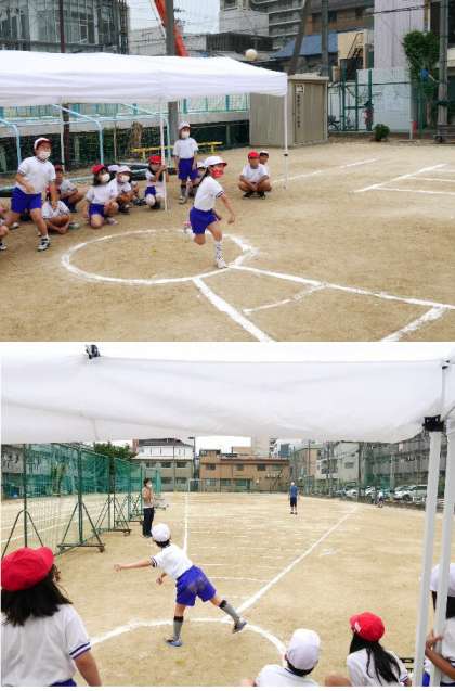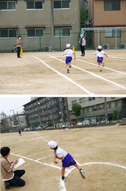 2年生が第2グラウンドで、50メートル走とソフトボール投げをがんばっていました。
