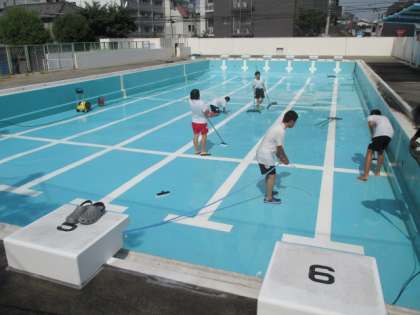 午後からプール清掃を行いました。
