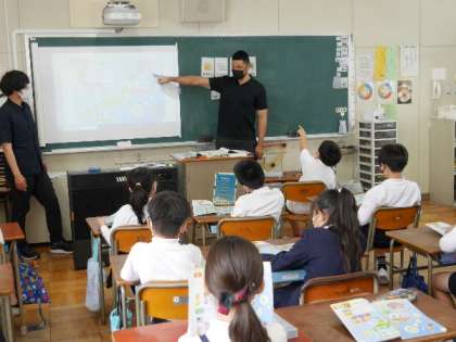 5月25日 4年英語!クリス先生と 公開日 2022/05/25 更新日 2022/05/25 学校生活 4年生の英語の授業にクリス先生が来てくれています。天候についての表現のしかたを学習していました。 いいね(0)