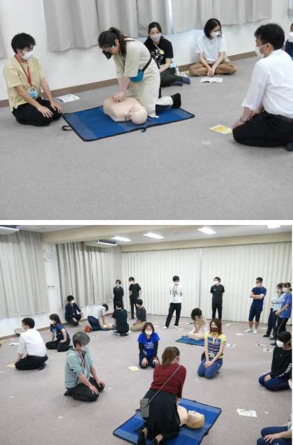 5月25日 救急救命講習!先生たちが受講 公開日 2022/05/25 更新日 2022/05/25 学校生活 来月から始まる水泳指導などをふまえ、先生がたが救急救命の実技講習をうけました。命を助けるために胸骨圧迫がとても重要なことがわかりました。胸骨圧迫やAED操作の研修をしっかりおこないました。 いいね(0)