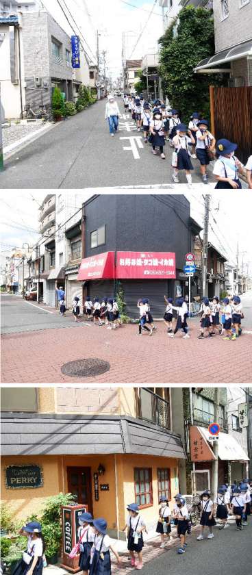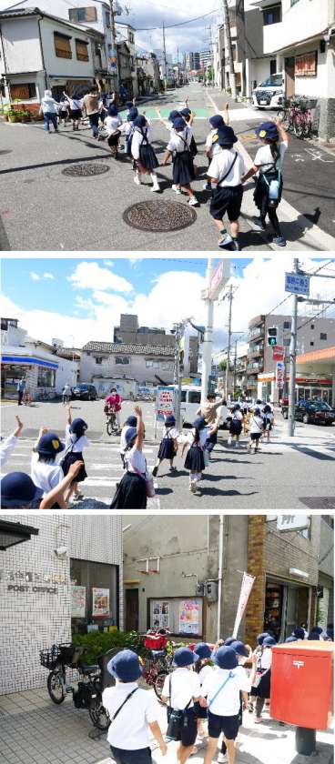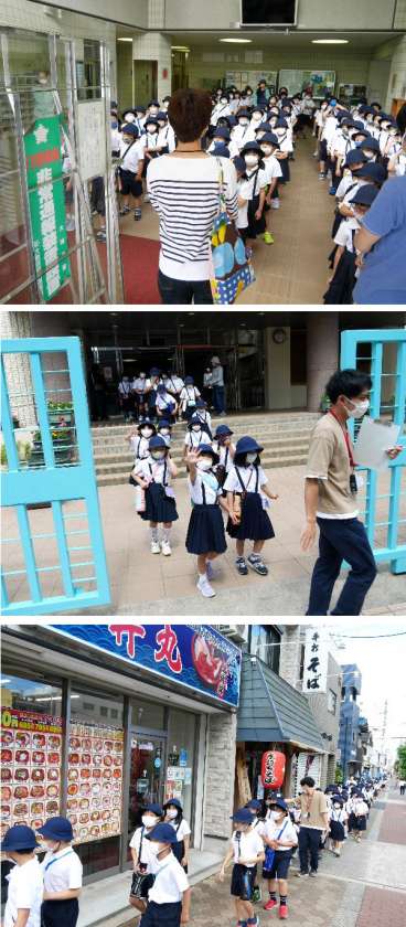 2年生が、校区にあるいろいろなお店や道路標識などを見て回りました。いろんなお店やたてものがありますね。