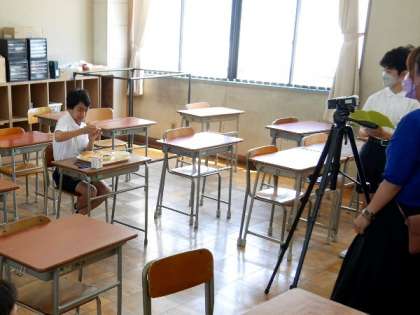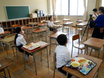 給食委員の児童たちが、給食の啓発ビデオの撮影をしていました。どんな動画になるか楽しみですね。
