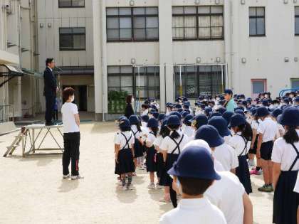 全校朝会を行いました。校長先生から、熱中症対策を優先として、登下校時や体育の授業でマスクをはずすことをお話しました。また、時の記念日にちなんで、時間を大切にしてほしいとお話しました。
