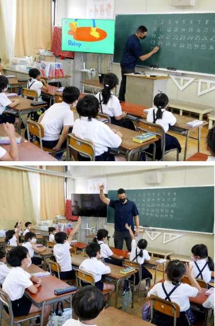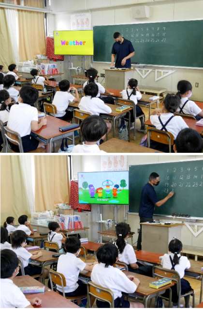 2年生の英語にクリス先生がきてくれています。今日は天気の学習です。
