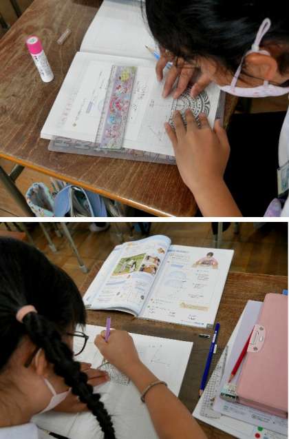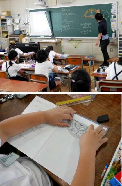 4年生の算数は習熟度別少人数授業をしています。今日は分度器をつかって角をかく練習です。